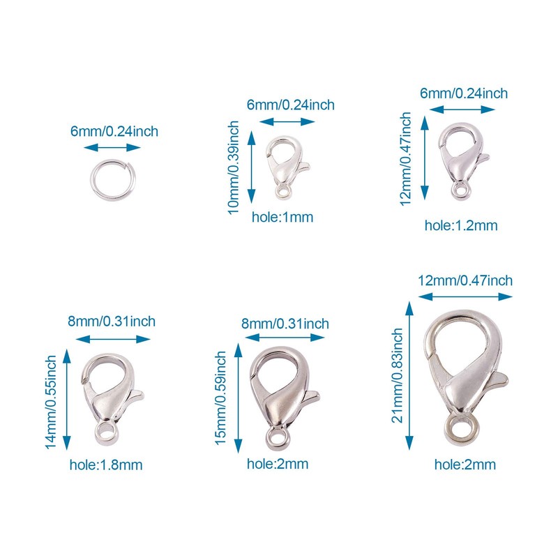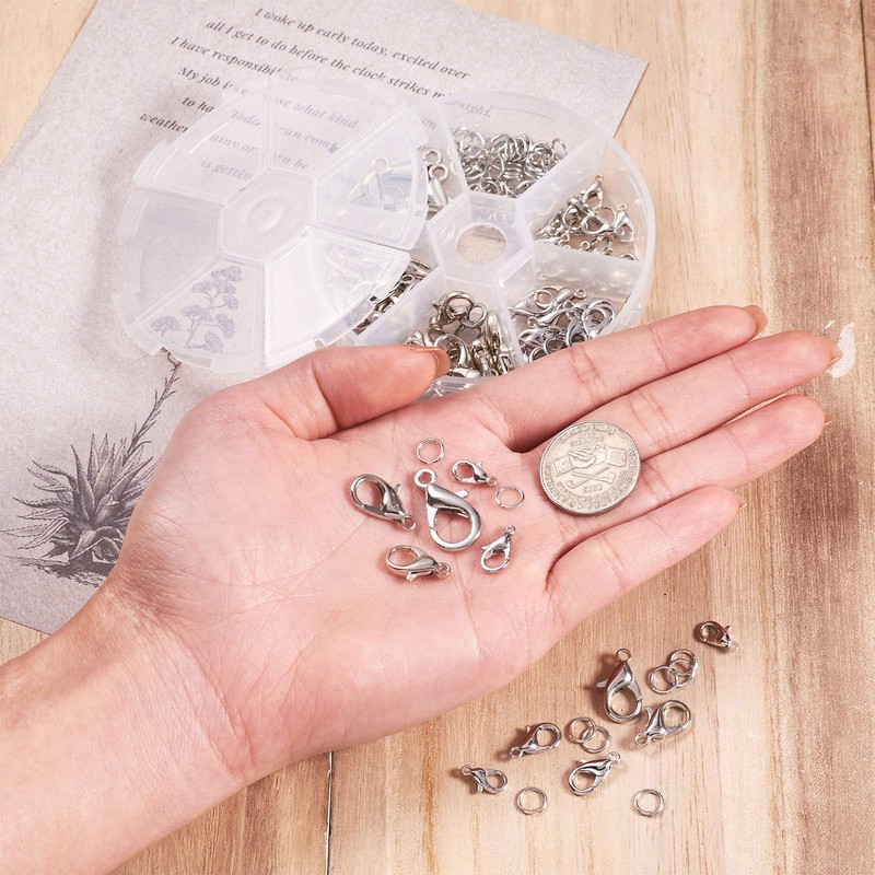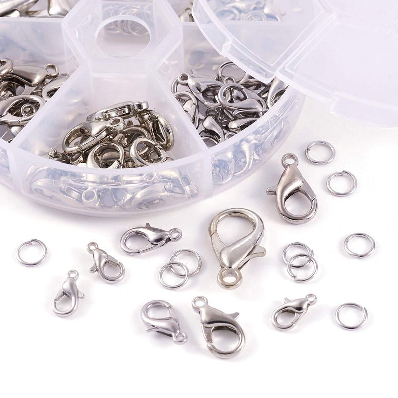 Pandahall 1 Set Jewelry Making Kit with Zinc Alloy Lobster Claw Clasps and Open Jump Rings for Bracelet Necklace Jewelry Making (Platinum)