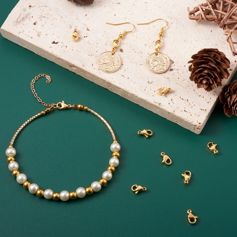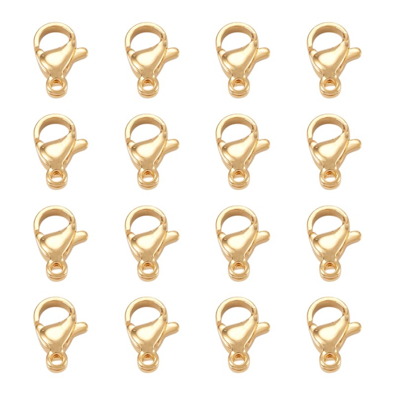 Pandahall - 100 cierres de mosquetón de acero inoxidable 304, chapados en oro de 18 quilates, 10 x 6 x 3 mm, para pulir joyas, collares