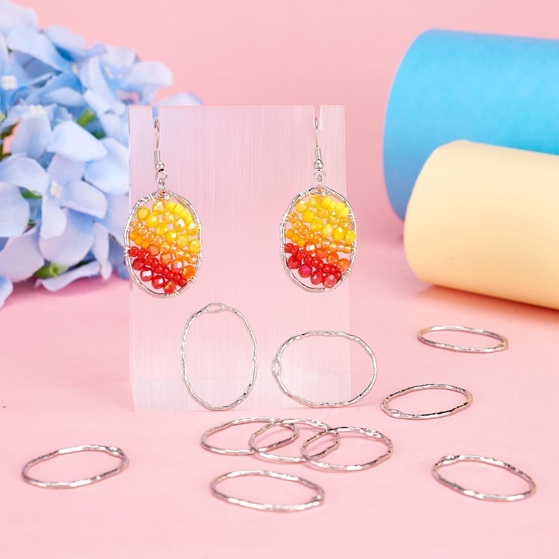 PandaHall 10pcs Alloy Oval Open Back Bezel Pendants - Platinum Plated Resin Earring Hollow Frame Blanks for DIY Resin Pressed Flower Jewelry Making