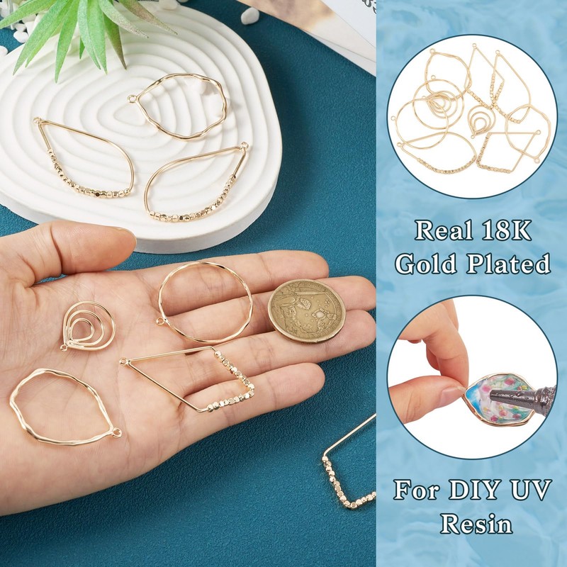 - 【Wide Applications】These golden hollow charms with beautiful appearance and special shape, equipped with a hanging loop, which can easily connect with earring hooks, cords, jump rings or other accessories to be necklaces, dangle earrings, chokers, bracelets, cellphone pendants, bag charms, key chains, cameo pendants, etc.