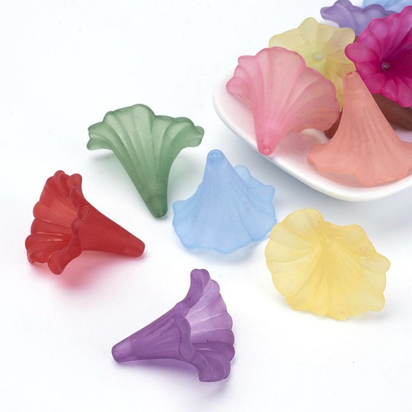 - Transparent Frosted Calla Lily Acrylic Beads, Mixed Color, Dyed.