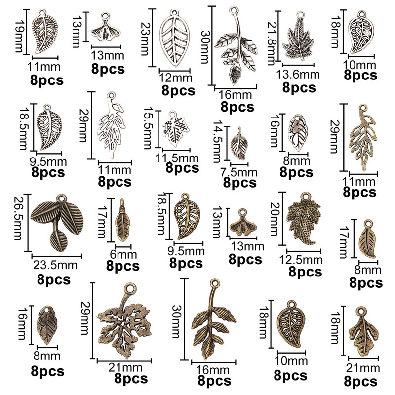 - 23 Styles Leaf Charms: Cute tree leaves charm, is a symbol of life, energy and peace, great to build personalized lucky charms, punk or cosplay style makeup costume.