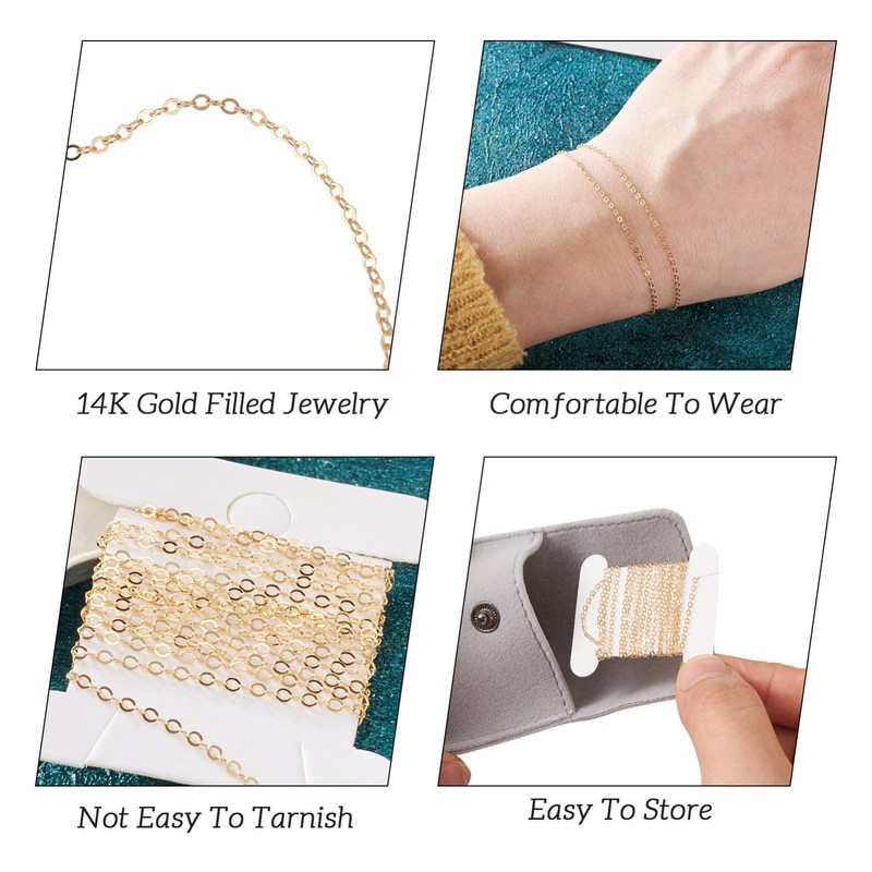 - Wide Application: 14k gold filled chain is suitable for making anklets, layer chain, hoop earrings, bracelet, traveler's coin necklace, saint christopher necklace, and tiny tag necklace.