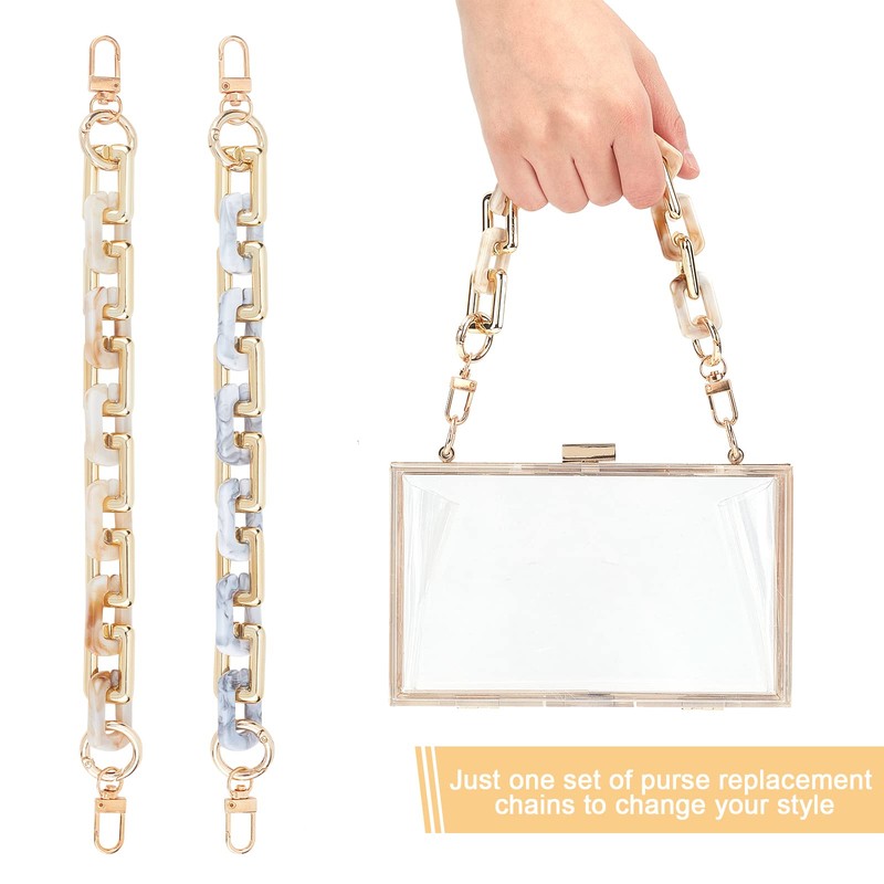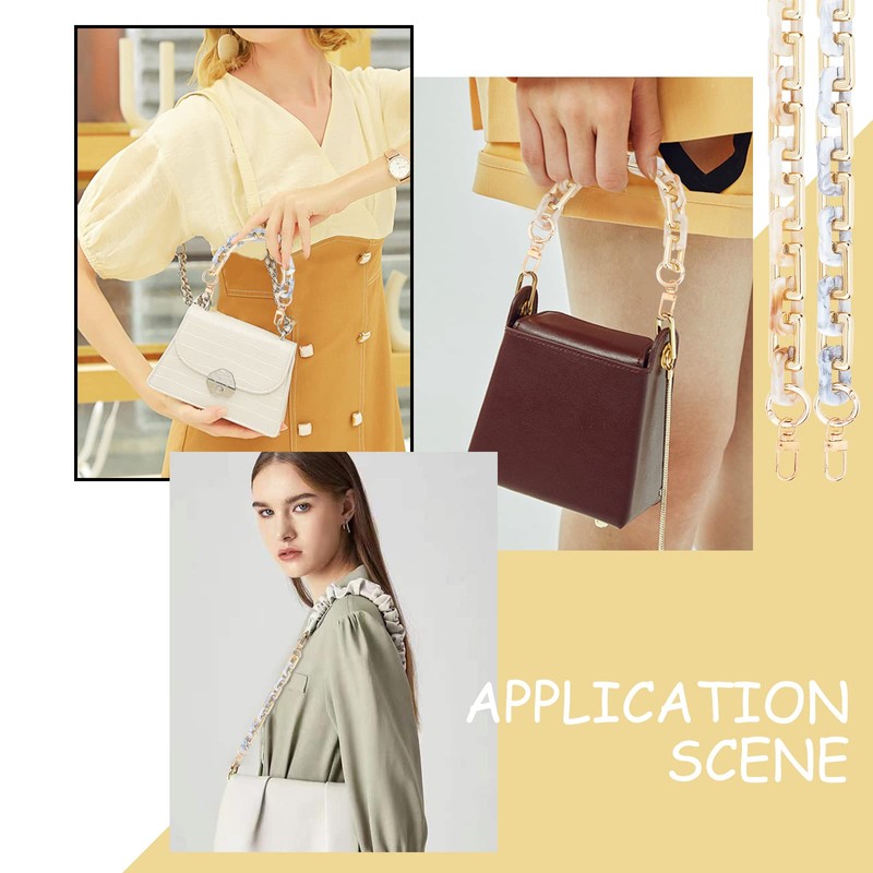 - Acrylic bag chain: made of 2 style imitation marble and light gold metallic acrylic linking ring, rather unique and eye-catching. Smooth and shiny appearance, looks stylish and chic. Can match with your different styles and wallets.