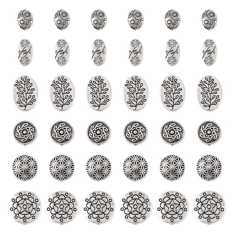 - Multi Style: Antique silver loose beads provide you a good selection from shapes to sizes. Metal spacer beads for bracelet making include different style of leaf, flower, sun pattern, oval beads, flat round design and more.