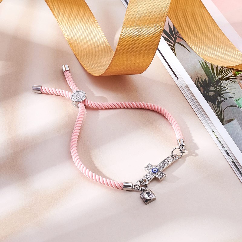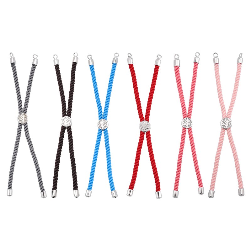 PandaHall 6 Strands Adjustable Nylon Sliding Bracelet Making (21cm) Cord Bracelet Making with Environmentally Friendly Brass Finds Real Platinum Tree of Life Charms Jewellery Making, Nylon Polyester