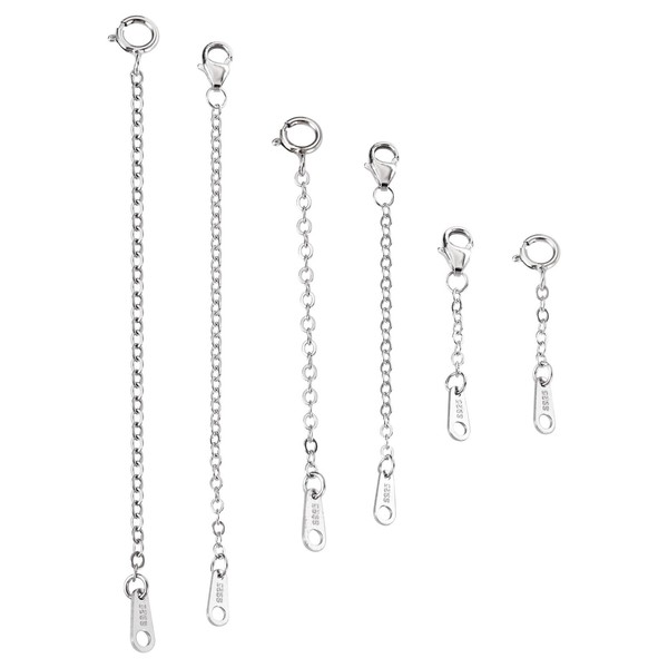 PandaHall 6pcs Sterling Silver Necklace Chain Extender Extension Chains Tails End Chains with Lobster Claw Clasps for Bracelet Jewelry Making