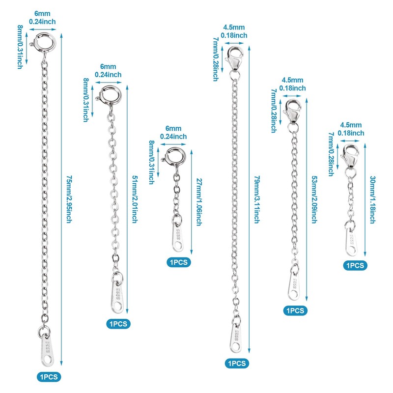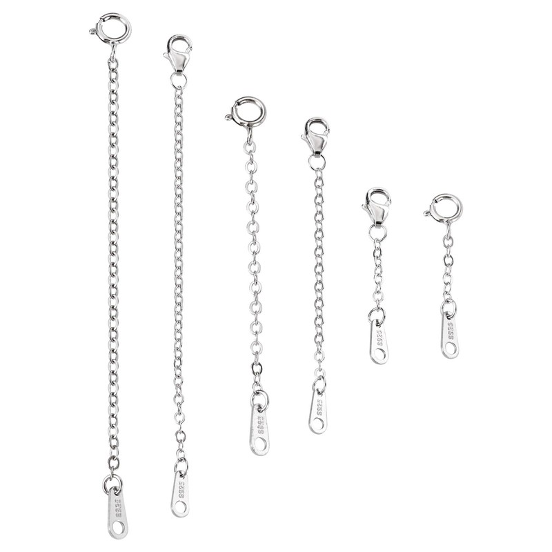 - Materials: Crafted from high-quality sterling silver, these necklace chain extenders are durable and resistant to tarnish. The lobster claw clasps ensure secure attachment, while the chain tabs provide easy integration with your existing jewelry pieces.