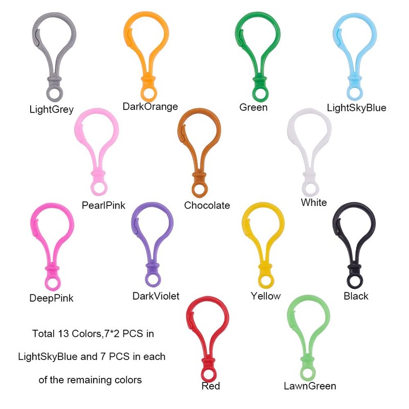 - 【Color】: 105 lobster clasps contains 15 different colors, grey, brown, yellow, white, black, purple, pink, red, light blue, orange, rose red, dark blue, light green, dark green.