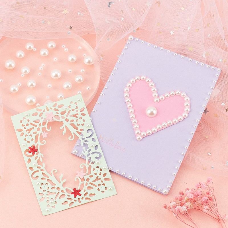 PandaHall Elite 690pcs/box Half Round Beige Imitation Pearl ABS Acrylic Dome Cabochons for Jewelry DIY Craft Making, 4~12x2~6mm