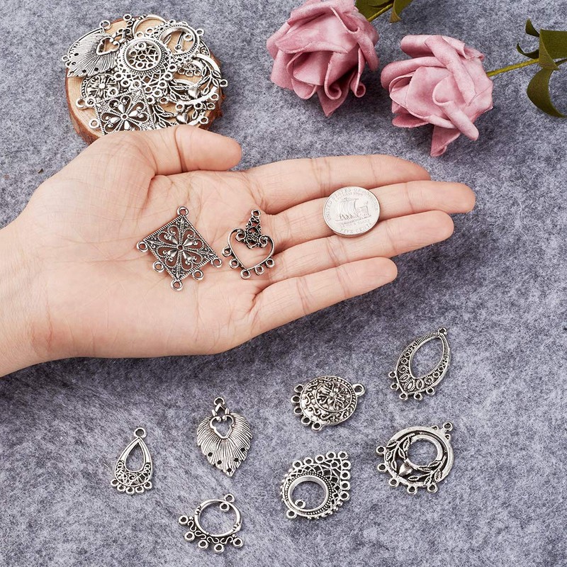 Pandahall - Encantos tibetanos antiguos de filigrana clásico con eslabones huecos y componentes de conector para fabricación de joyas, Plata