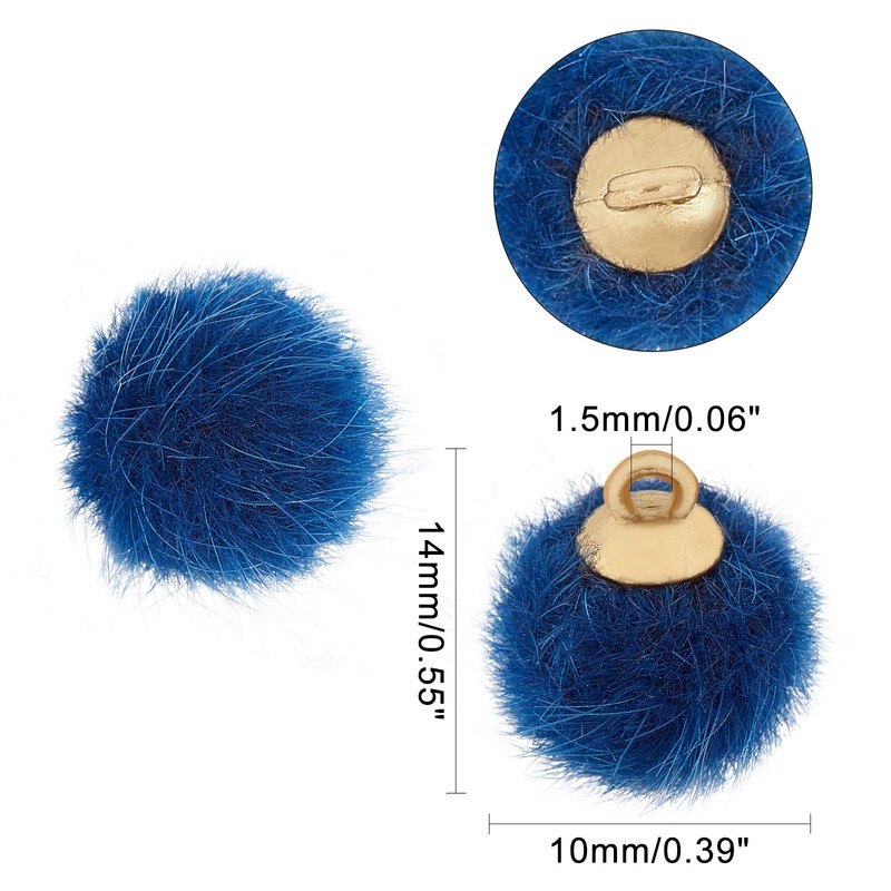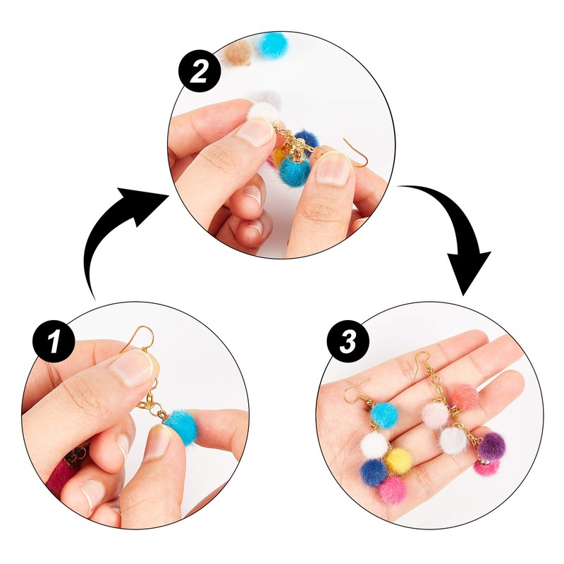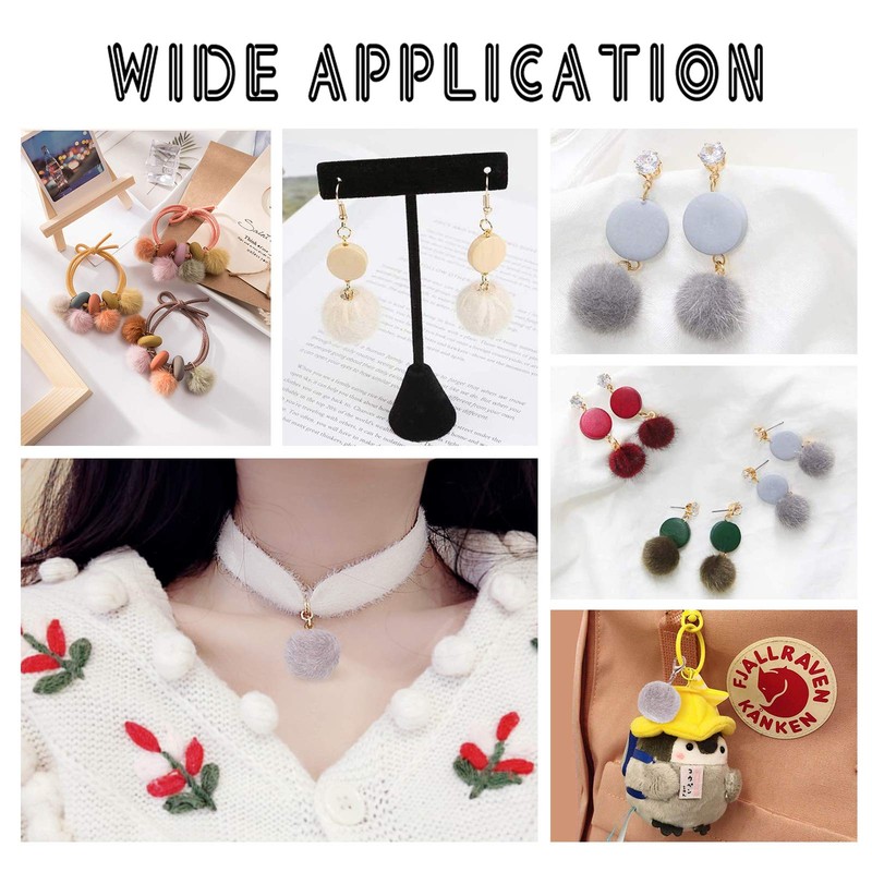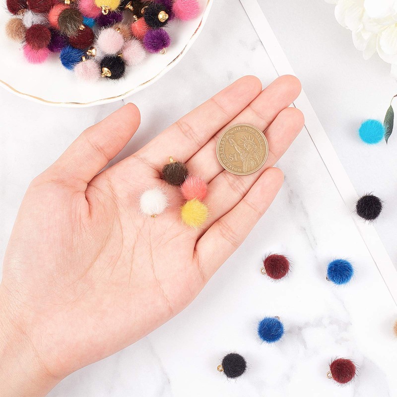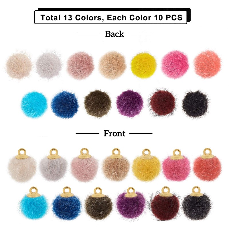 - Quantity: 10 pieces per color, 13 colors, 130 pieces colorful fur fluffy pompom balls total; Size:14mm long, 10mm in diameter, hole: 1.5mm
