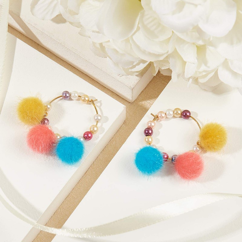 PandaHall Pom Pom Earrings, Brass, No gemstone.