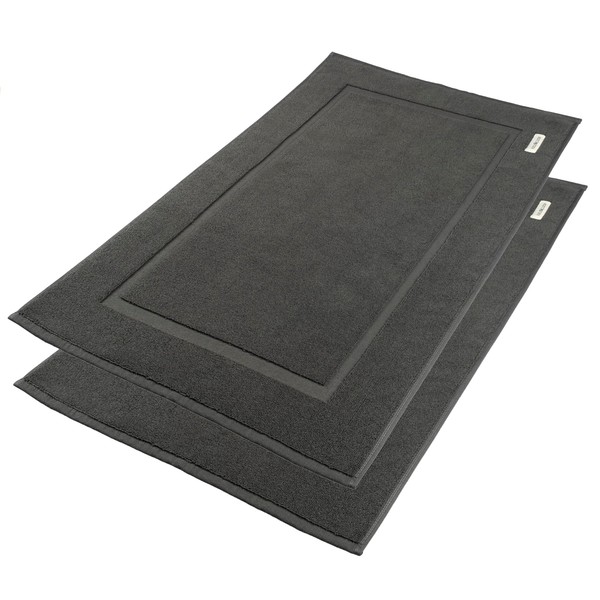 PandaHome Cotton Bath Mat Set, 2 Piece Bath Mat, 100% Cotton Shower Mat Quick Drying Soft Absorbent 1000 g/m² (Anthracite)