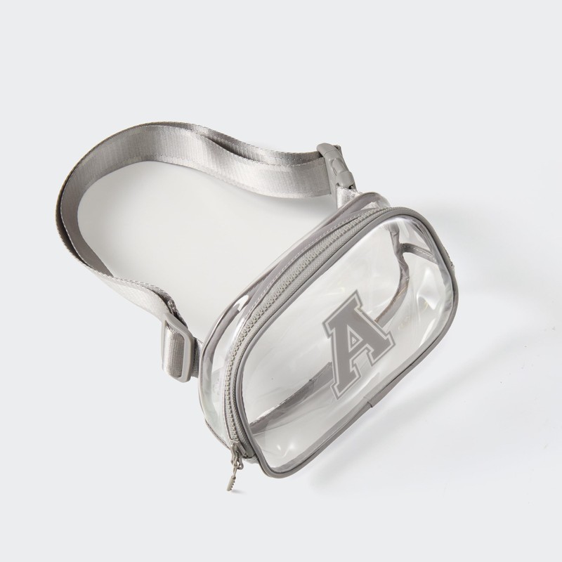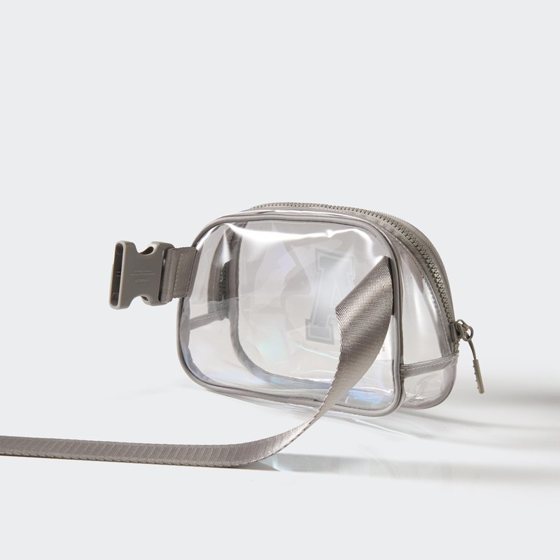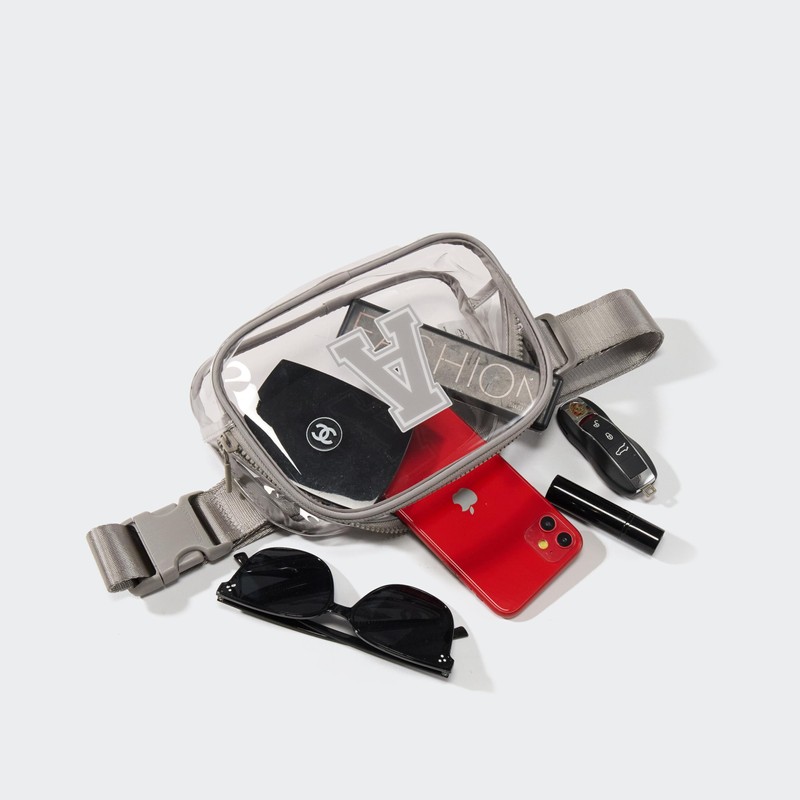 Pander Clear Small Belt Bag with Nylon Fabric Trim - Perfect for Game Day, Ballgame, Stadium Events Essentials - Light Grey/A
