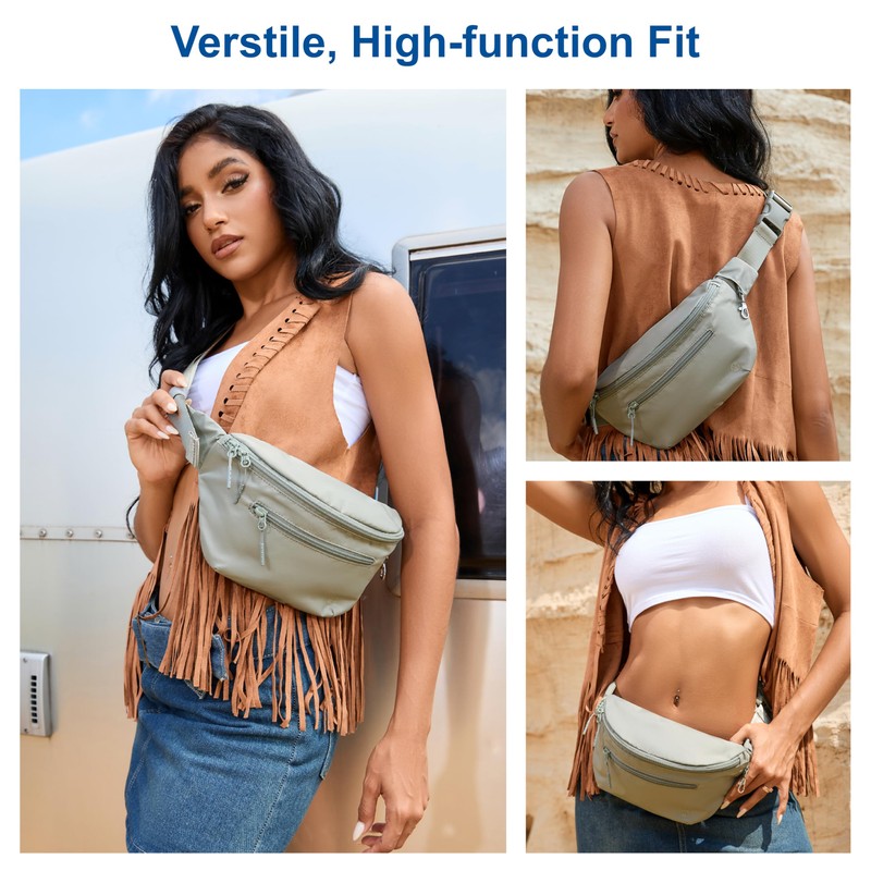 The soft nylon strap adjusts up to 143 cm (56.25 inches), allowing flexible wear across different body types—whether worn as a crossbody or around the waist.