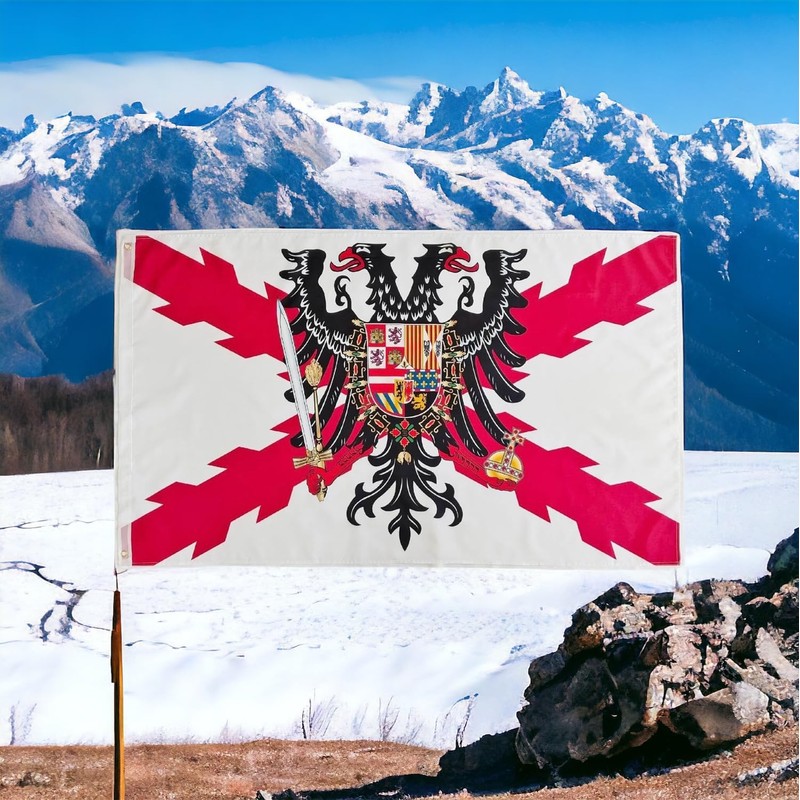 Pandiui23 Flag of BORGOÑA Cross with Bicephalous Eagle -Eagle Bicefala Cross of San Andres150X90 CM, Spain flag thirds shield empire Charles I