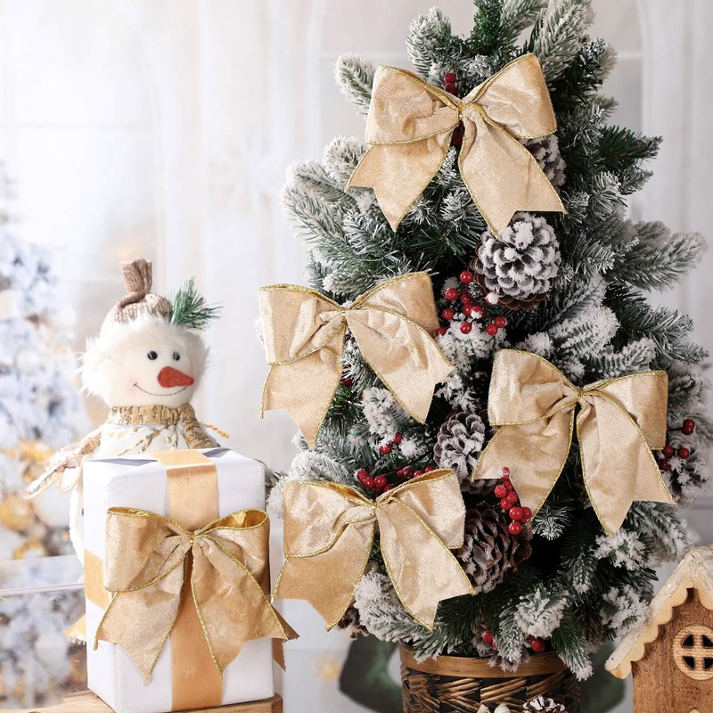 - Delicate Christmas Bows: you will receive 12 pieces of Christmas bows in champagne color, the back of the bows are gold with gold border; Enough quantity can meet your different decorative needs