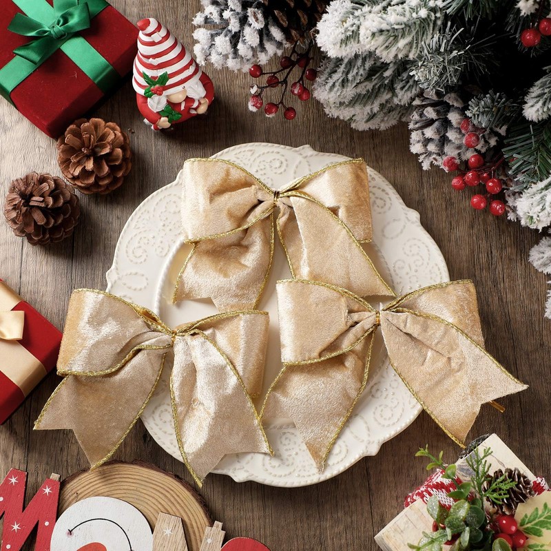 - Modern Design: the velvet bows are designed in champagne, bright and charming, full of traditional holiday atmosphere, bringing joy to your family and making your holiday more joyful and warm