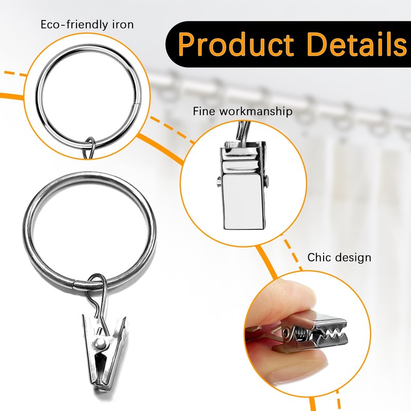 - Wide Application Our curtain rings with clips is suitable for different types of curtains and shower curtains, and can also be used for hanging keys, crafts, Christmas lights, photos, etc. Whether in the living room, dining room, bedroom or on the balcony, these curtain rings are easy and convenient to use.