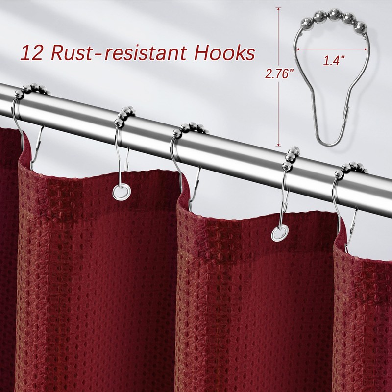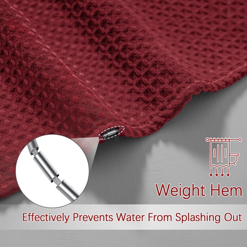 PANGSINNE Elegant Burgundy Fabric Shower Curtain - Waffle Textured Heavy Duty...