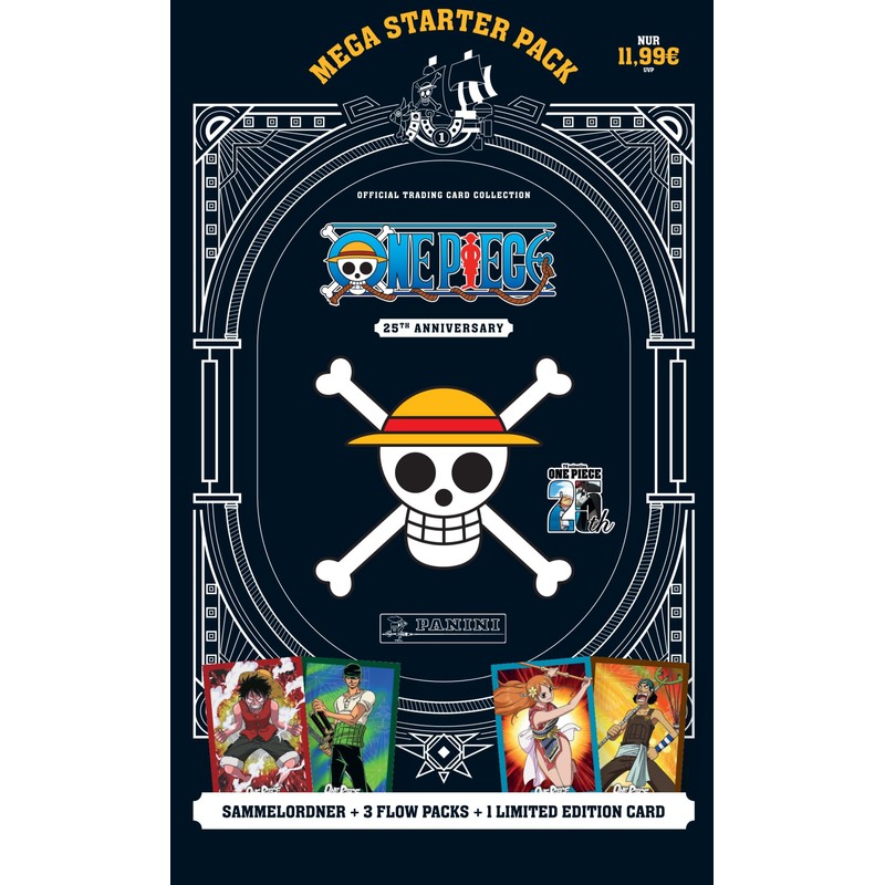 - Anniversary edition with extensive collection: Celebrate 25 years of One Piece with Panini's exclusive Trading Card collection, which includes 150 base cards, 50 special anniversary cards and 150 parallel cards. These cards pay homage to the adventures of Monkey D. Ruffy and the entire straw hat band.