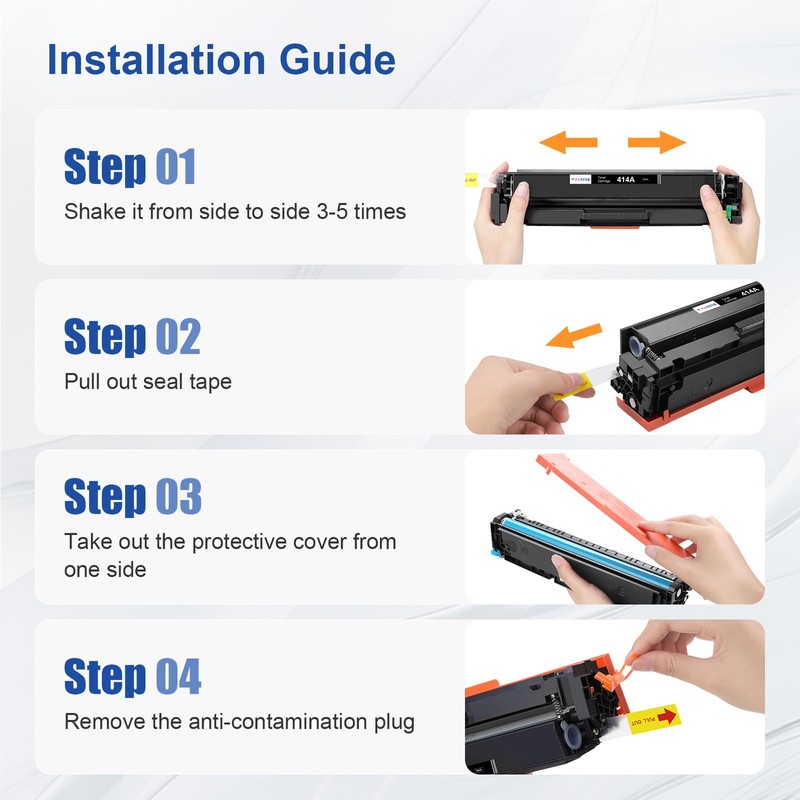 • With Chip: PANINK 414A toner cartridges are alread installed with chips, No need to transfer orginal 414A or 414X toner chip to them