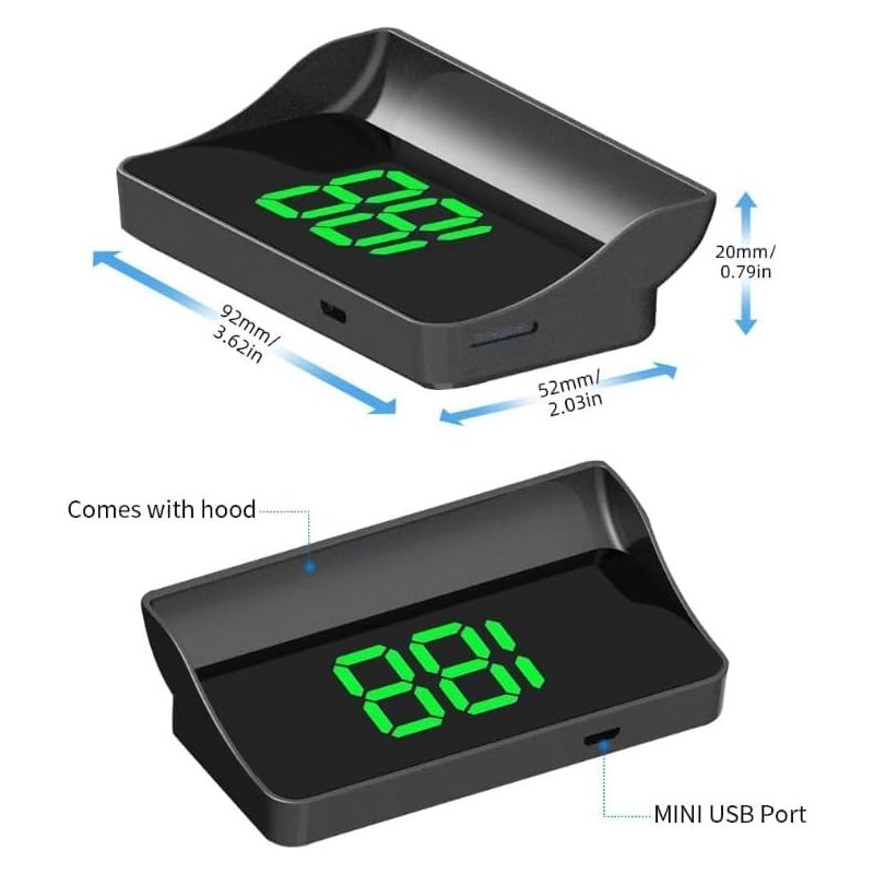 • 2.2 cm large font, clearly visible day and night. The speed is displayed in KM/H. Included are the anti-slip pads for mounting on the dashboard.