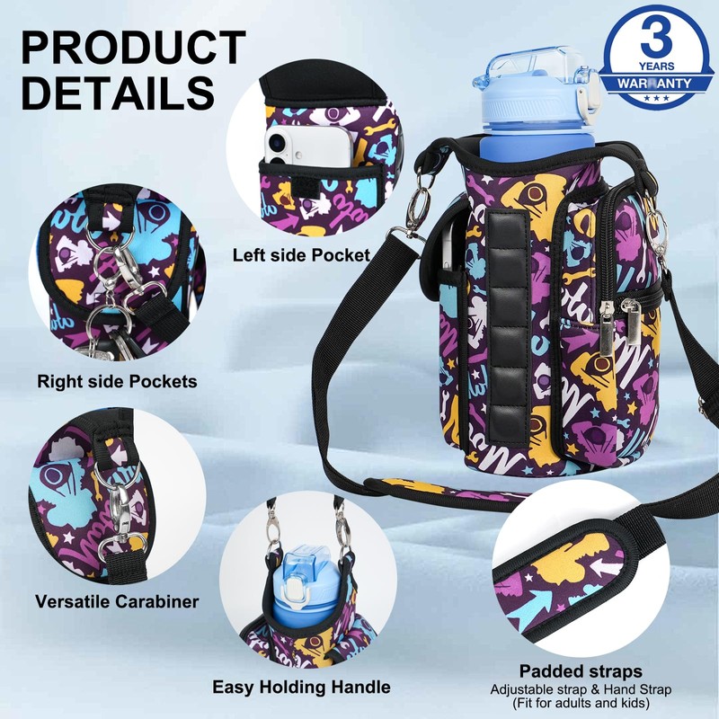 - 【Universal Fit and Practical】 Designed to fit most standard water bottles from 18oz to 40oz, crafted from soft neoprene, sturdy yet lightweight, this gym water bottle holder bag offers a reliable solution for gym-goers seeking convenience and functionality