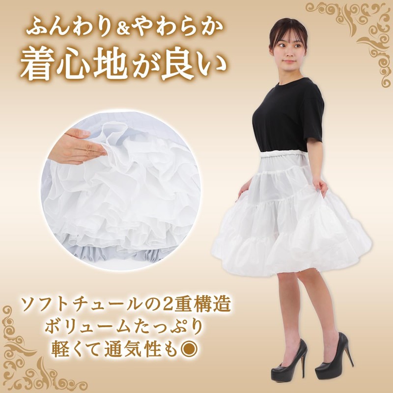 - (Standing and Sitting) The 3-level construction with no wires and gradually increases the volume and spreads over the hem, making it easy to match with your dress as well as standing and sitting. Also recommended for use when you want to show off your sitting, such as a dress at a music event