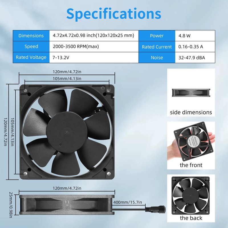 - 【Upgraded IP68 Waterproof Technology】The 120mm computer ventilation fan designed with upgraded waterproof technology which with a layer of waterproof material completely sealed to the fan's circuit board to protect against moisture, water and dust.
