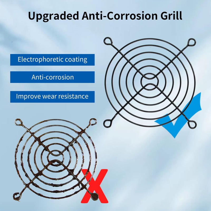 - 【Upgraded Rust Proof Grill】120mm Powerful Exhaust Fan equipped with 2pcs upgraded electrophoretic coating grill which is anti-corrosion and improve wear resistance.