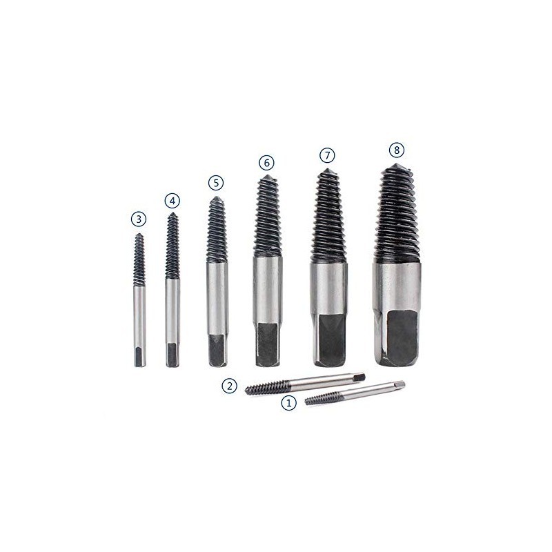 - 8-piece heavy duty steel extractordifferent sizes of screw extractor to meet different needs.