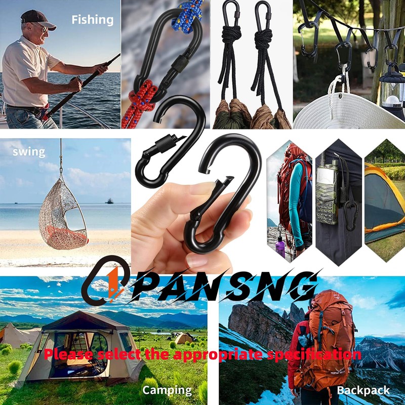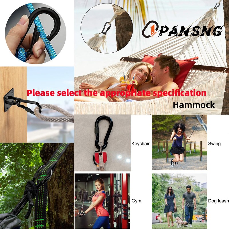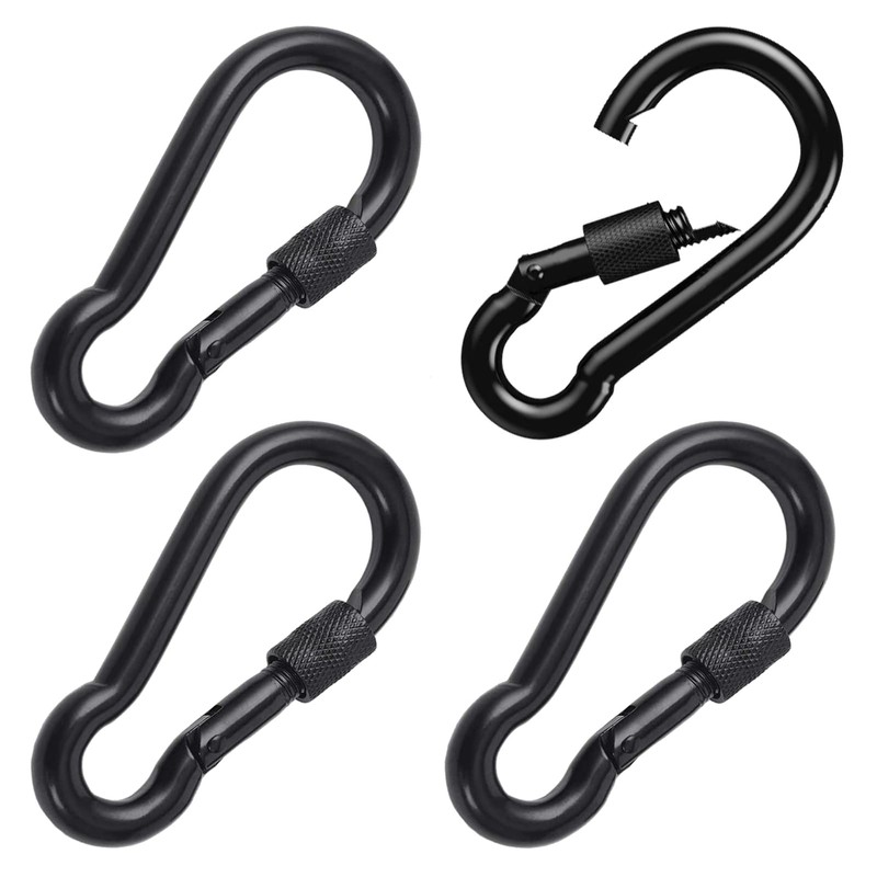 1. M8 gourd-shaped black locking spring snap hooks, suitable for quick connection and disassembly of various rope belts, chains and hooks. Perfect for gym,keychain,chain,swing,hammock,tent, camping, Outdoor hook, dog leashes or dog crate lock.