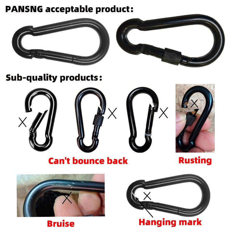 • 【PRODUCT SUPERIORITY】:The black locking carabiner clip is produced by an automatic machine, product precision increased by more than 5 times, tension increased by more than 50%.Spring-Loaded Closing Gate can be opened and closed very smoothly and quickly, good reset, no deviation,and can repeatedly open and close more than 5000