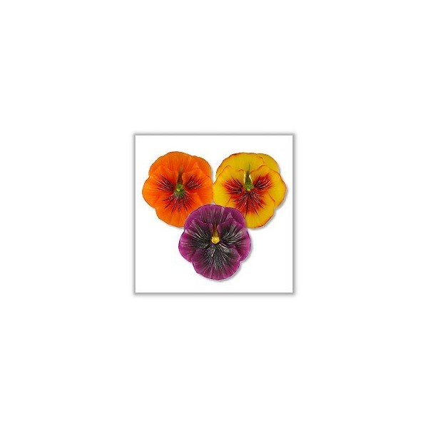 Pansy Floating Candles in our primary color set are the brightest of our selections and consist of 3 hand finished pansy blossoms, one each in brilliant orange, dark purple and an bright yellow. The centers and petal edges are highlighted with contrasting and complementary colors to add depth and realism to each blossom.