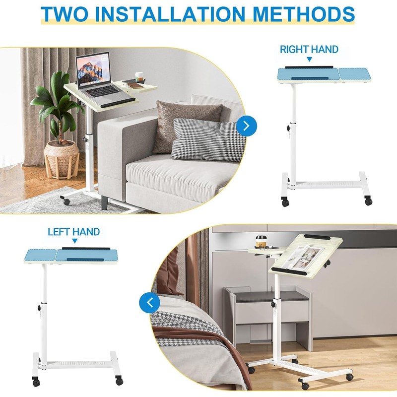 - Sturdy Construction and Easy Maintenance: Rolling table is made of thick steel and MDF wood, bearing 22 lbs; Desktops can also be switched for left-handed users; Overbed table desktop is wear-resistant and waterproof, just wipe it with a damp or dry cloth