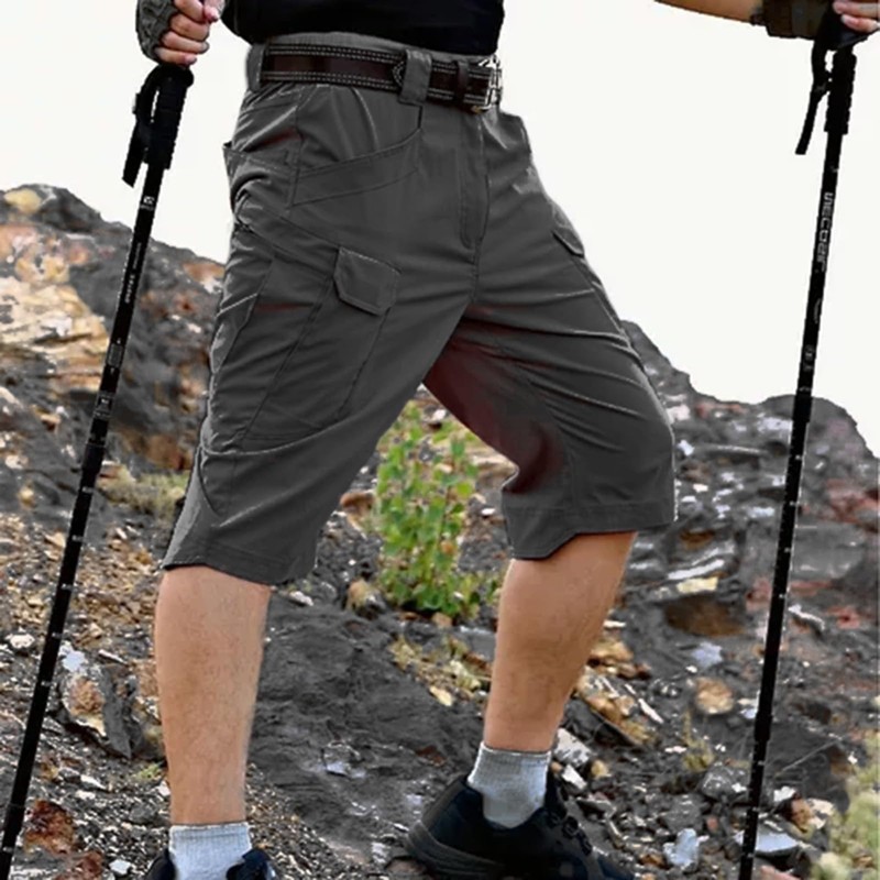 Pantalones Cortos Cargo Tácticos Impermeables Informales para Hombre Secado Rápido Transpirables y con Diseño de Múltiples Bolsillos (MX/US, Alfa, Grande, Regular, Regular, Negro)