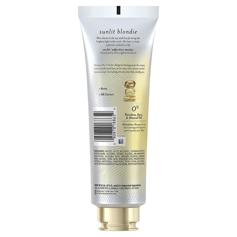Pantene Sunlit Blondie Daily Rescue Conditioner Toner For Blonde Hair, Treatment for Color Treated Hair, with Biotin and Silk Extract, 8 Fl Oz