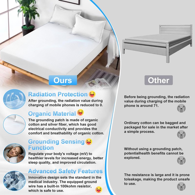 - Premium Material - The earthing sheets are made from 95% organic cotton and 5% silver fiber, which is super soft, breathable and comfortable. And with all-around premium elastic, our fitted earthing sheet hug the mattress firmly, so it doesn’t slip, slide, bunch up, or pop-off at night.