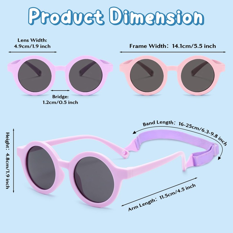 PANTIDE 2pcs Baby Sunglasses Unbreakable Polarized Cute Sunglasses with Adjustable Strap for Newborn Toddler Infant Soft Bendable Silicon Frame UV400 Lenses Protection for Girls Boys 0-36 Months