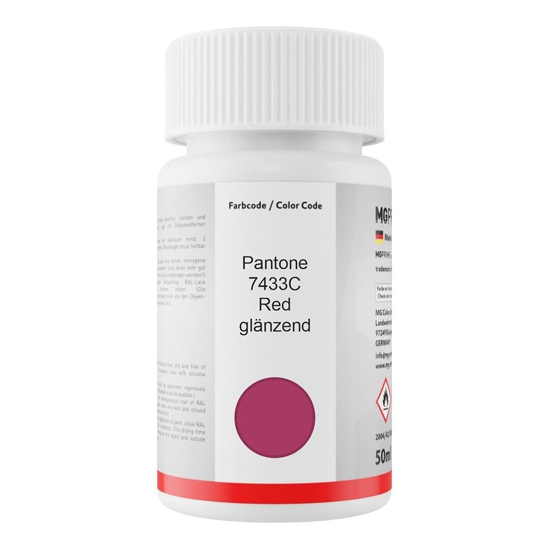 - 50 ml paint pen in professional quality with Pantone 7433C glossy red.