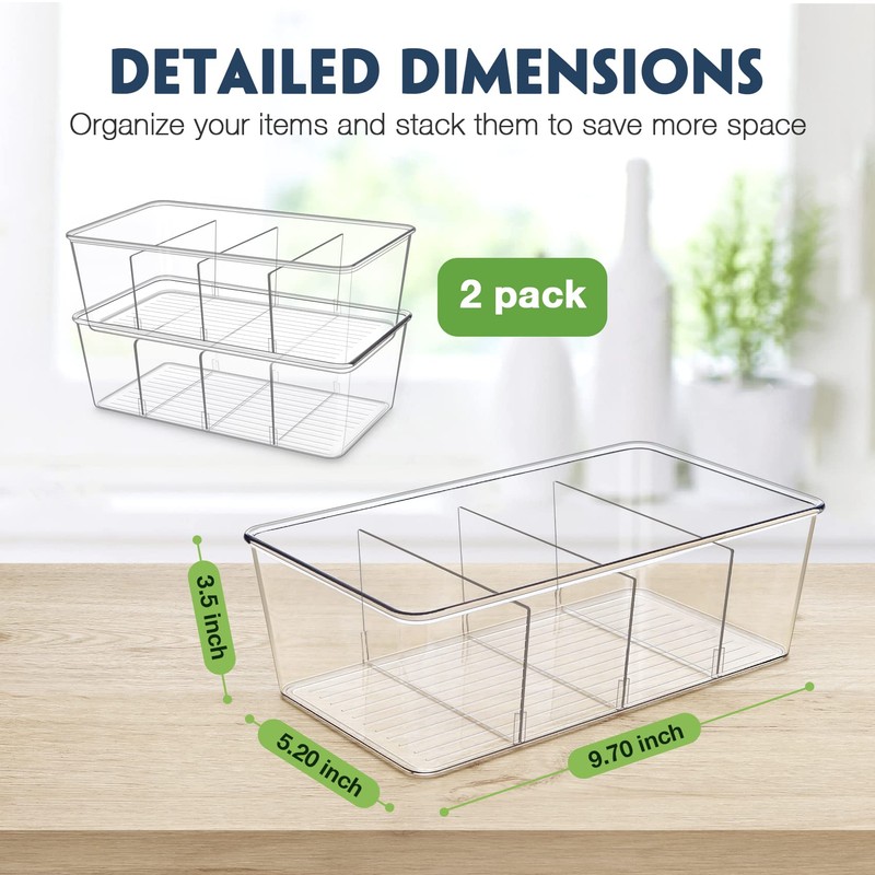 Batoto Pantry Organization and Storage Bins, Refrigerator Organizer Bins – Clear, Kitchen Organization and Storage with Dividers (2 Pack)