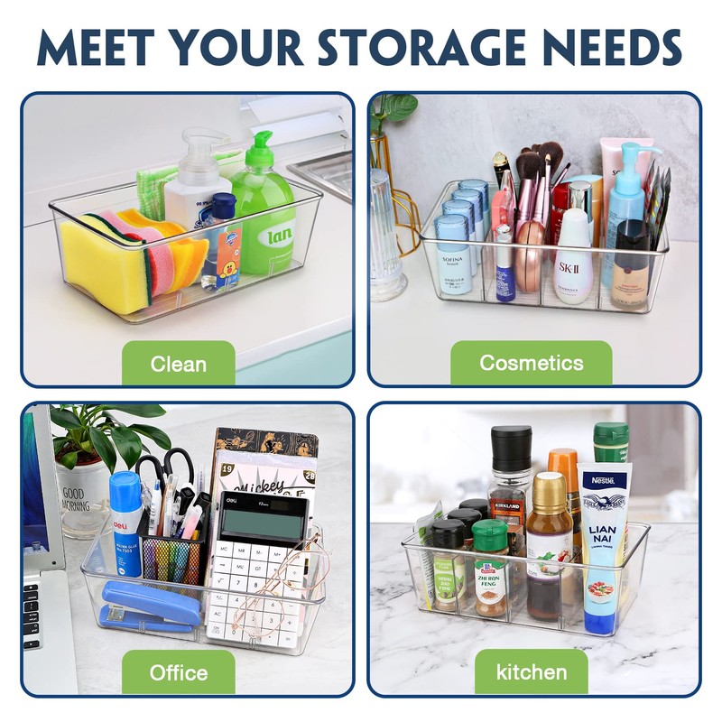 - Removable Dividers: There are 3 removable dividers in each plastic storage bins, easy to separate and organize items.