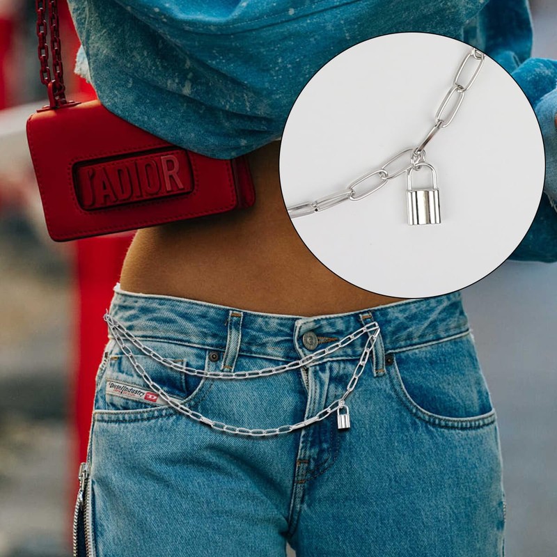 Pants Chain Belt, 4 PCS Adjustable Punk Metal Goth Waist Chain for Jeans Pants Dress Pocket, Girls and Teen Goth Gift, Hip Hop Rock Trendy Accessories