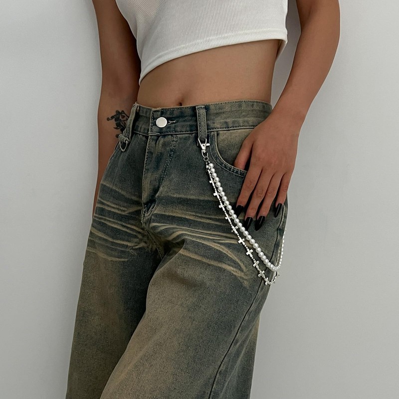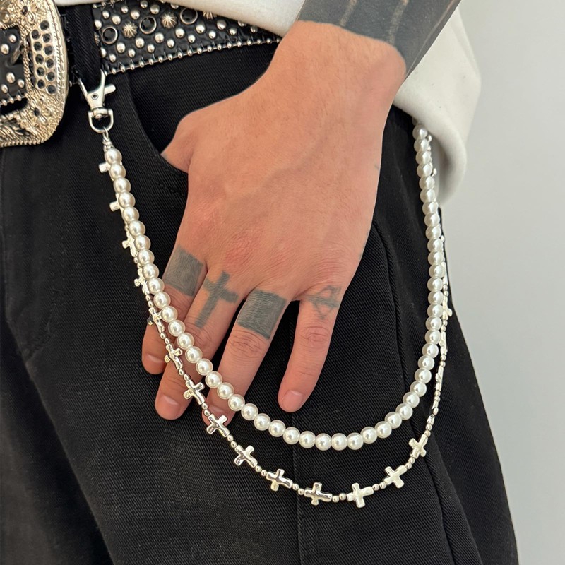 - STREET STYLE - With the pearl chain design and rugged industrial style, this pants chain is a must-have item for fashionistas.