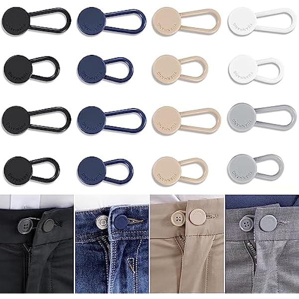 Pants Waist Button Extender: 16Pcs Button Extenders for Jeans - Women Men Pants Waist Extenders - Pants Waist Extension 1/1.3 Inches - 5 Colors Pant Waistband Expander