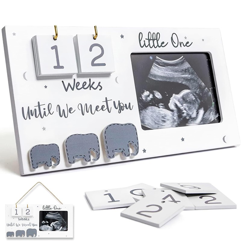 - Different functions: picture frame baby with 20 numbered pendants (0-9), count down the days until you see your little one during your pregnancy, and after the baby is born, you can use the cute wooden elephant piece to record the date of birth, size, weight and more of your child