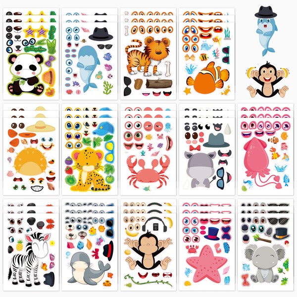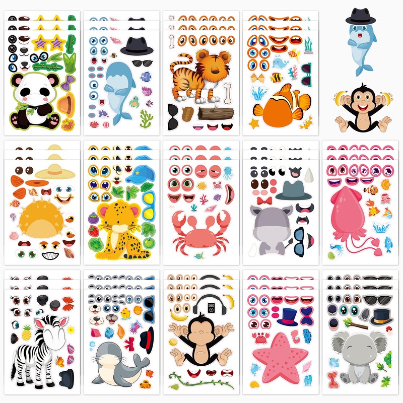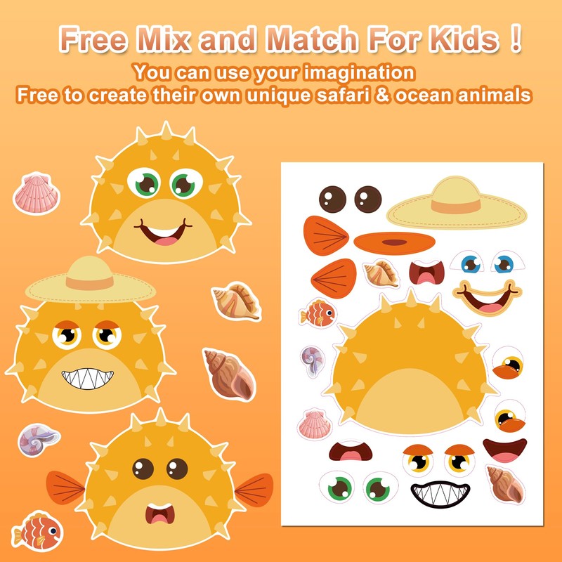 Panzong 42 PCS Make-A-Face Sticker,Safari Stickers for Kids,Make Your Own Animal Mix and Match Sticker Sheets with Safari and Ocean Animals for Crafts Party Favors Goodie Bags Stuffers