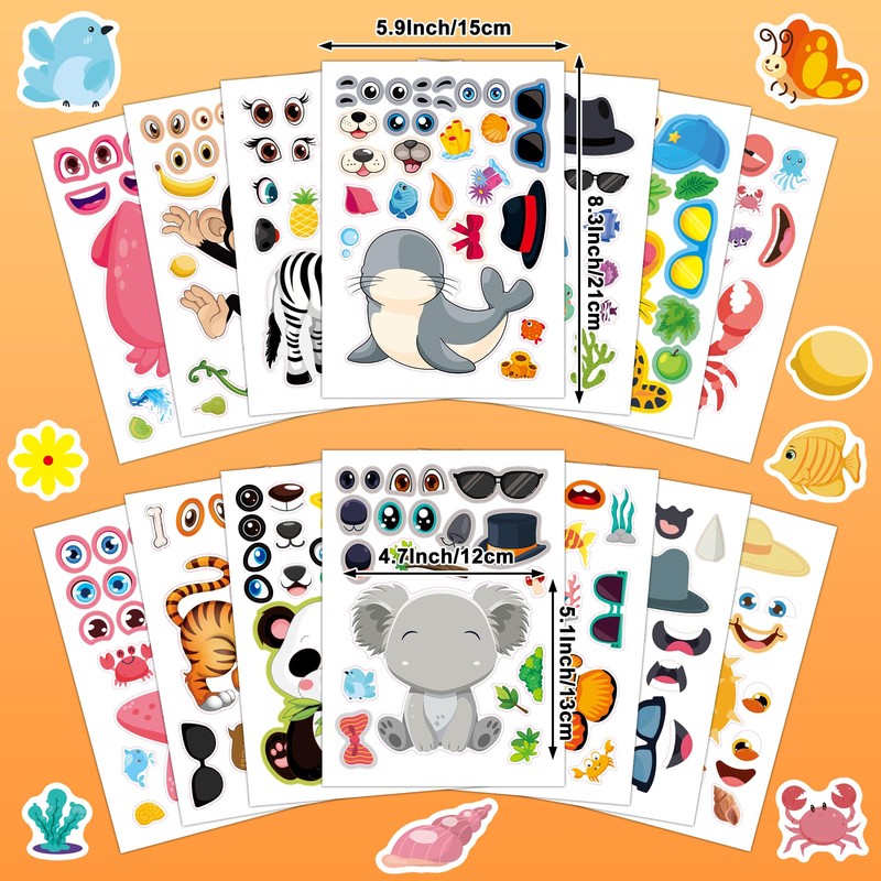 - Mix and Match Fun: Each sheet features different eyes, mouths, and accessories to create endless silly or cute faces, promoting kids' creativity and fine motor skills.